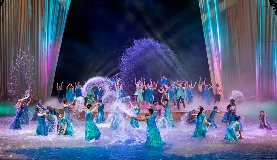 This splashy affair — quite literally, thanks to the aquatic flare of the O Theater — was written and directed by André Kasten and Leah Moyer, who choreographed Cirque shows such as Mystere and The Beatles LOVE. It featured a 90-minute acrobatic spectacle set to the music of Academy Award-winning, world-renowned score composer Hans Zimmer, who performed three arrangements live, including a specially adapted piece from Interstellar.
