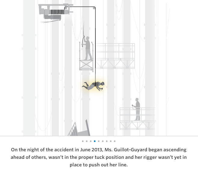 “I wasn’t there,” her sobbing rigger later told a fellow employee, according to OSHA records. “I felt the rope go through my hand.”